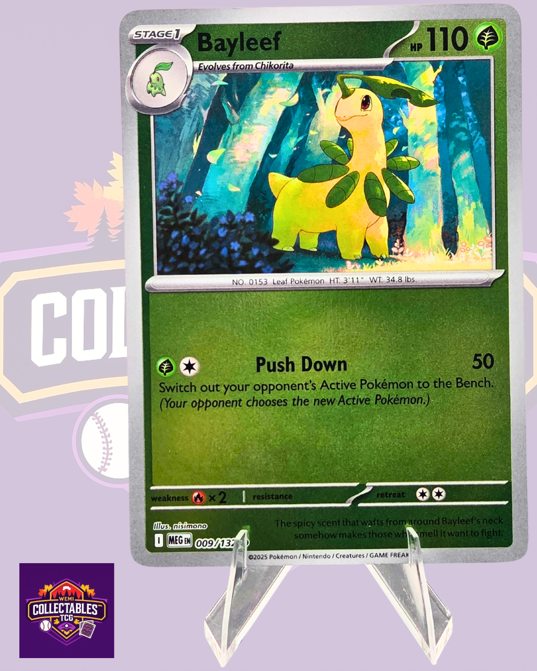 The Bayleaf card from the English Mega Evolutions Pokémon TCG set features stunning artwork and collectible power. Perfect for collectors and players alike, this card represents the iconic Mega Evolution era — known for its bold designs and dynamic battle strength. Add this officially licensed Pokémon card to your collection to showcase your love for classic Mega Evolutions.