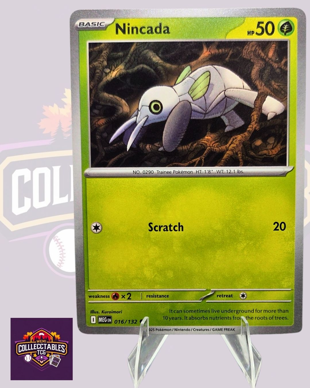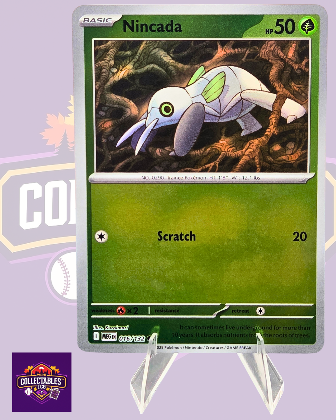 The Nincada card from the English Mega Evolutions Pokémon TCG set features stunning artwork and collectible power. Perfect for collectors and players alike, this card represents the iconic Mega Evolution era — known for its bold designs and dynamic battle strength. Add this officially licensed Pokémon card to your collection to showcase your love for classic Mega Evolutions.
